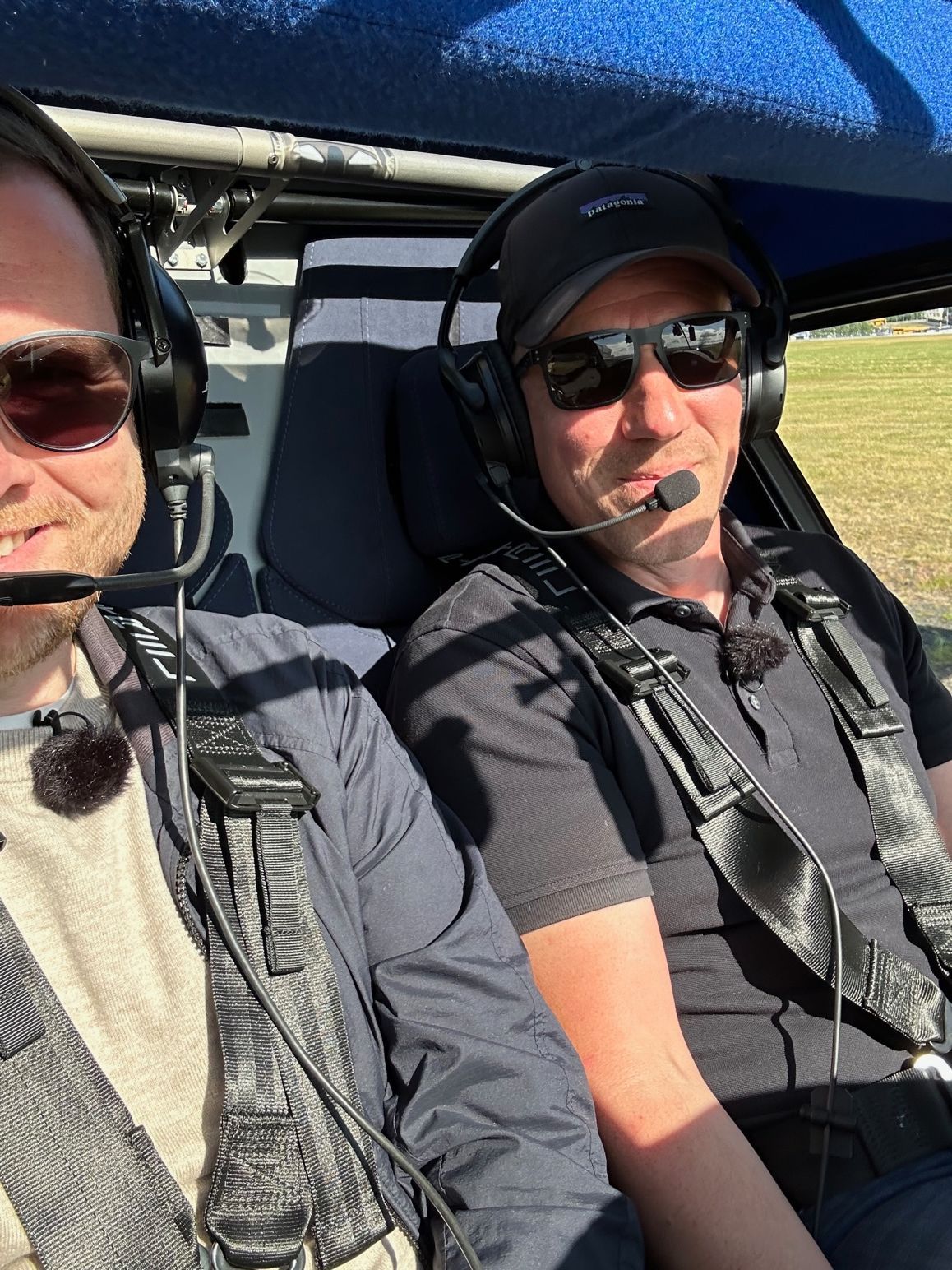 Þessa dagana erum við að taka upp næstu þáttaröð af Nýjasta tækni og vísindi. Eitt innslagið fjallar um rafvæðingu flugs. Í blíðskaparveðri fékk ég sitja með Matthíasi Sveinbjörnssyni flugmanni og forseta Flugmálafélags Íslands og fljúga með honum á rafmagni yfir Reykjavík. Vélin er ótrúlega hljóðlát og fislétt.